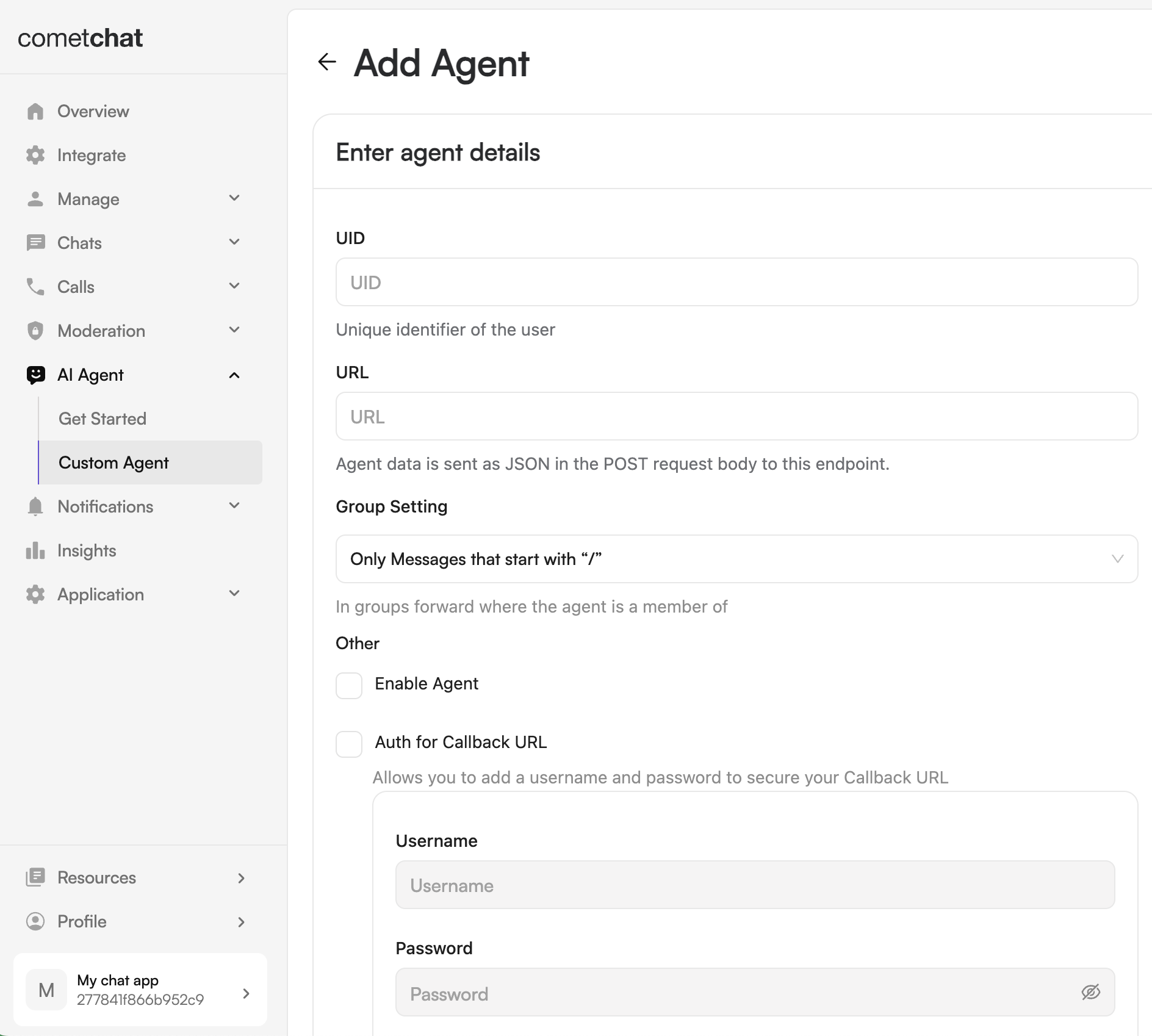 - URL: The callback URL of your agent.