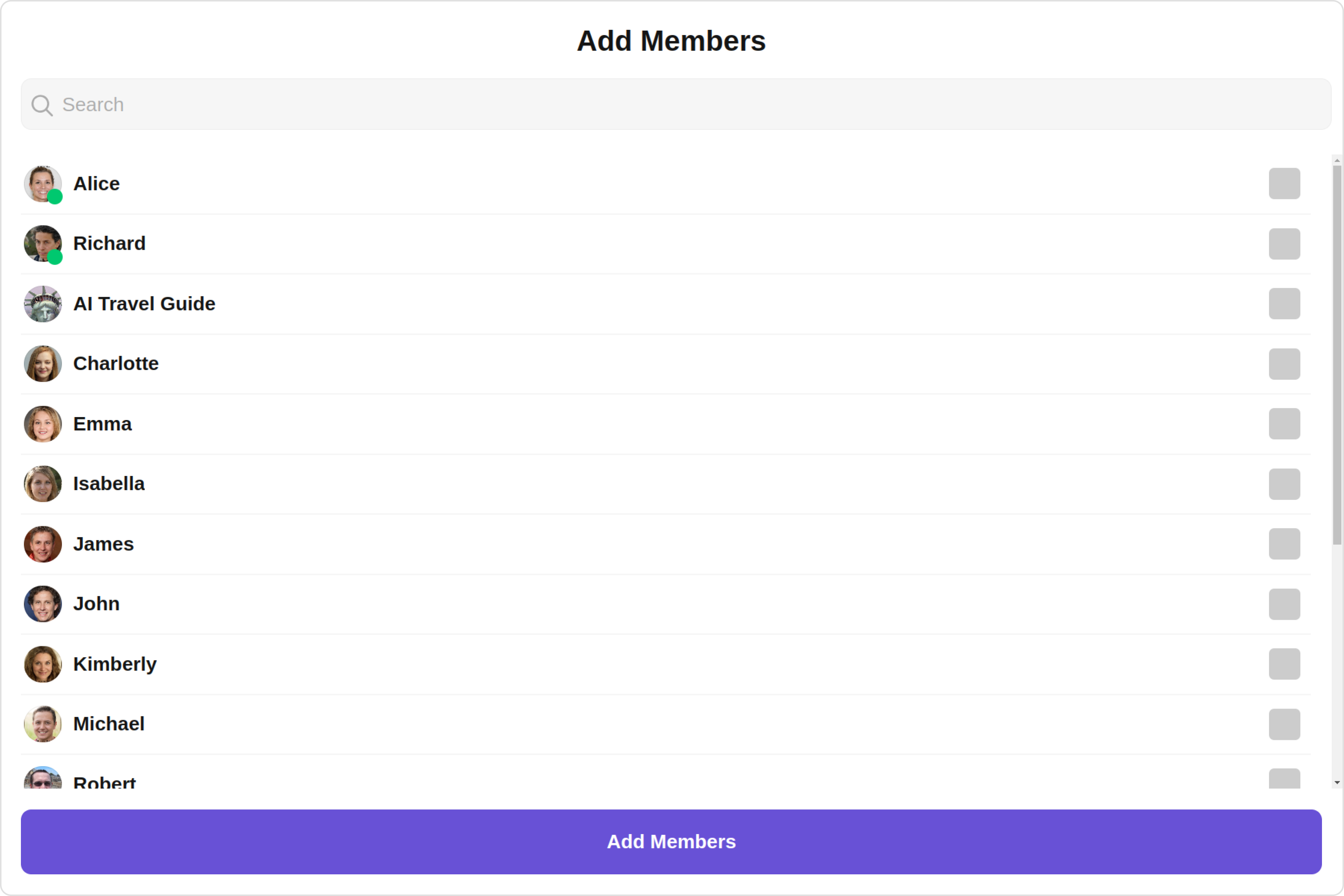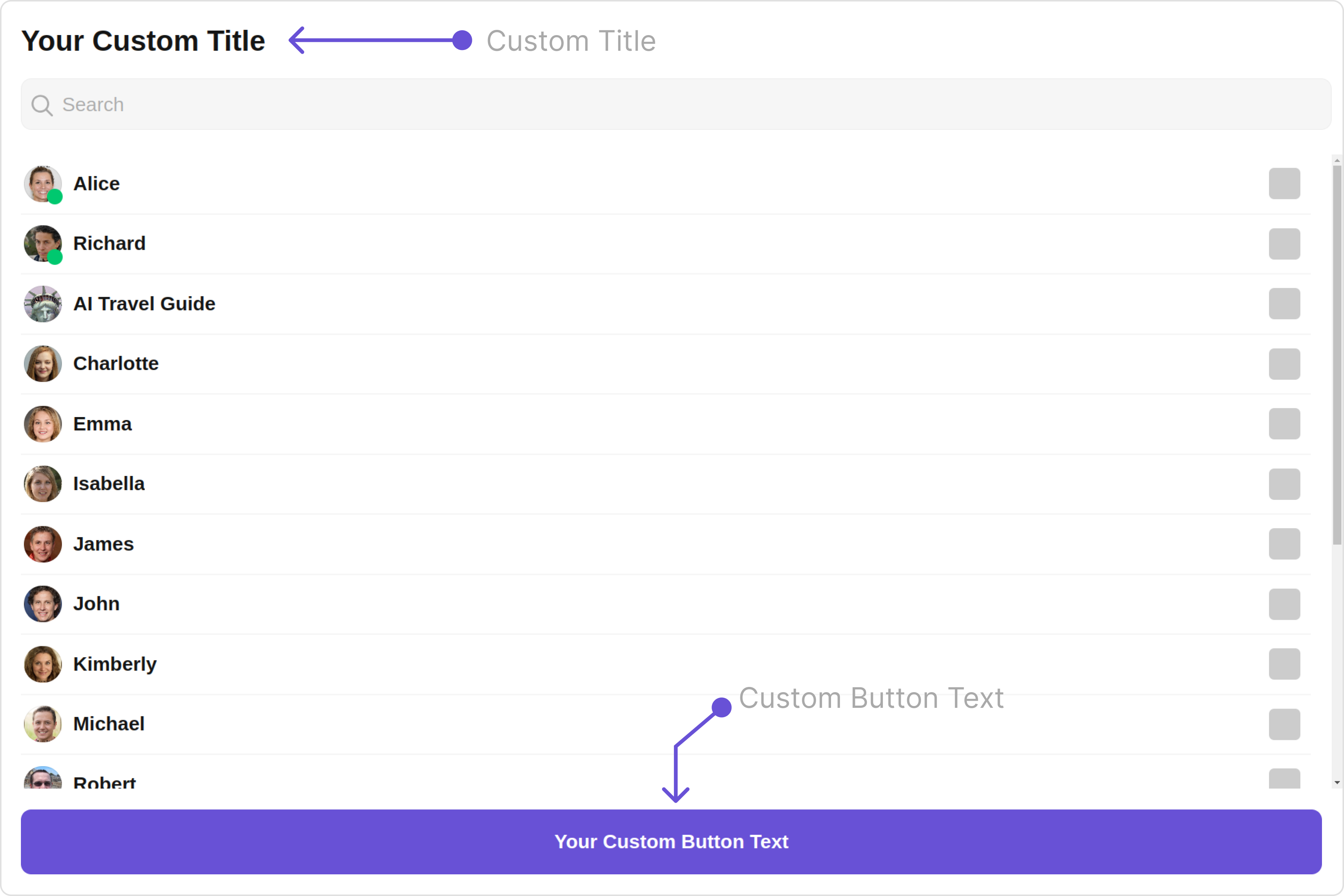 To fit your app’s design requirements, you can customize the appearance of the Add Members component. We provide exposed methods that allow you to modify the experience and behavior according to your specific needs.Style