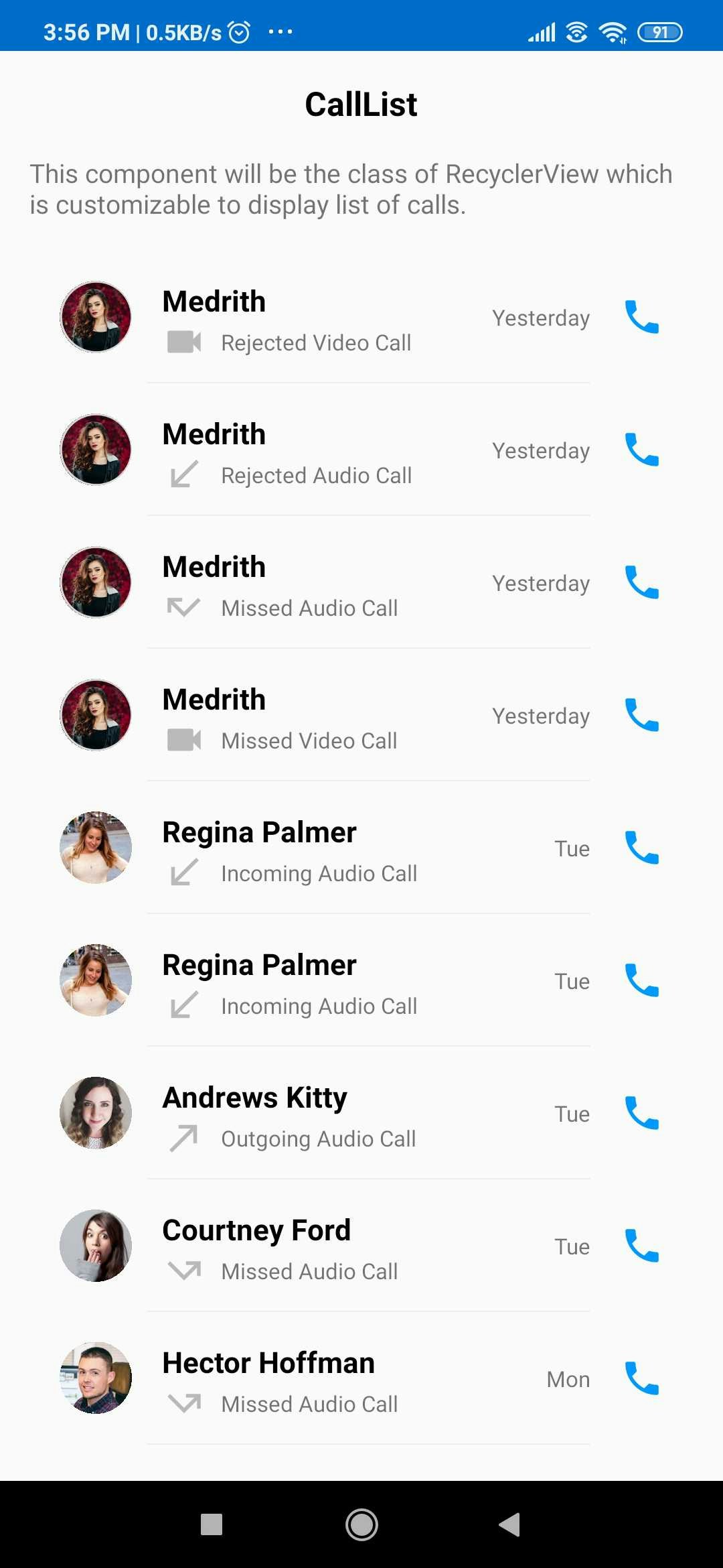 CometChatCalls is custom RecyclerView which will help you to display list of calls.